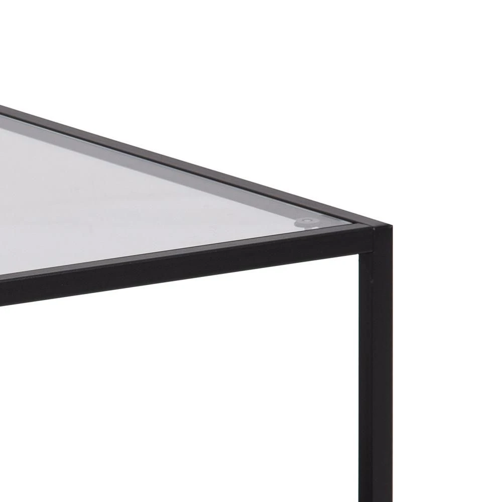 Set van 2 salontafelts Dover met glazen tafelblad en legplank in zwart esdecor met een mat zwart frame.