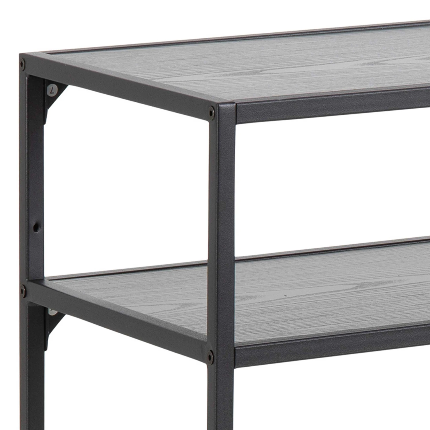 Met de meubelen uit de Dover collectie richt je je huis in volgens de laatste trends. Deze stoere sidetable heeft een frame uit zwart gepoedercoat metaal en legplanken met een zwart esdecor. De sidetable is perfect om je hal of woonkamer aan te kleden met wat leuke decoratie. Tip: plaats een schaaltje op het meubel waarin je je sleutels kunt achterlaten.