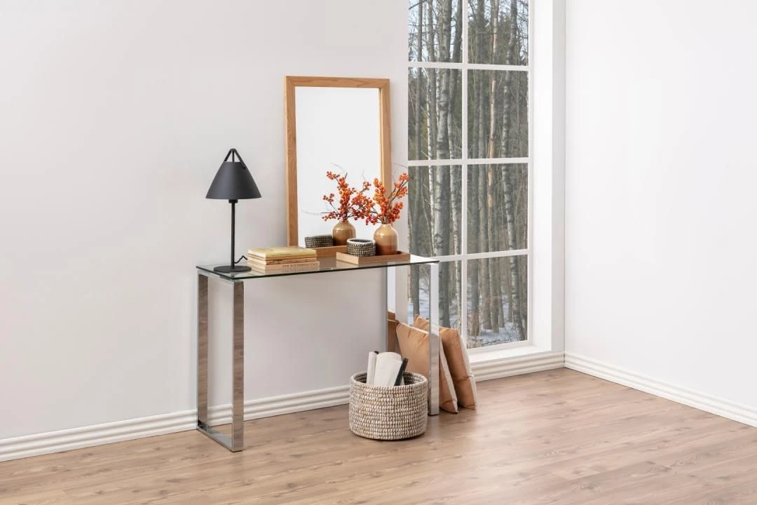 Deze sidetable is ideaal om in je hal of woonkamer te plaatsen. Dankzij het doorzichtige glazen tafelblad oogt deze sidetable heel modern en luxueus. Je kan dit tafeltje gebruiken om decoratiestukken op te plaatsen of voor praktische zaken zoals een opbergplaats voor je autosleutels.