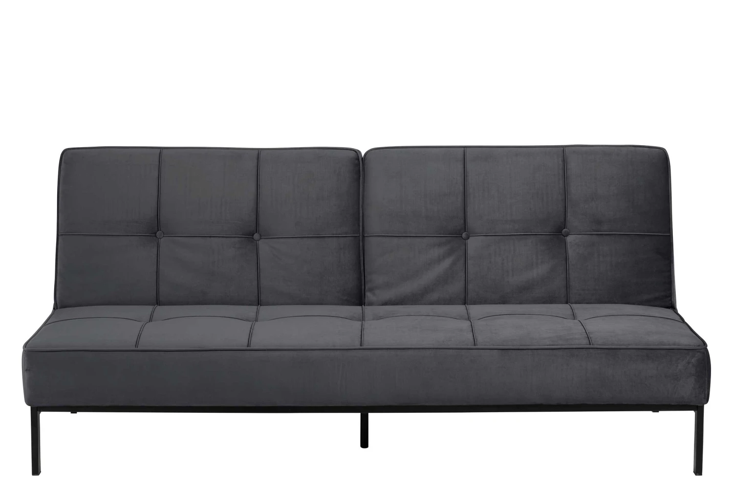 Slaapbank Giovanni met donkergrijze, fluwelen bekleding en zwart onderstel.