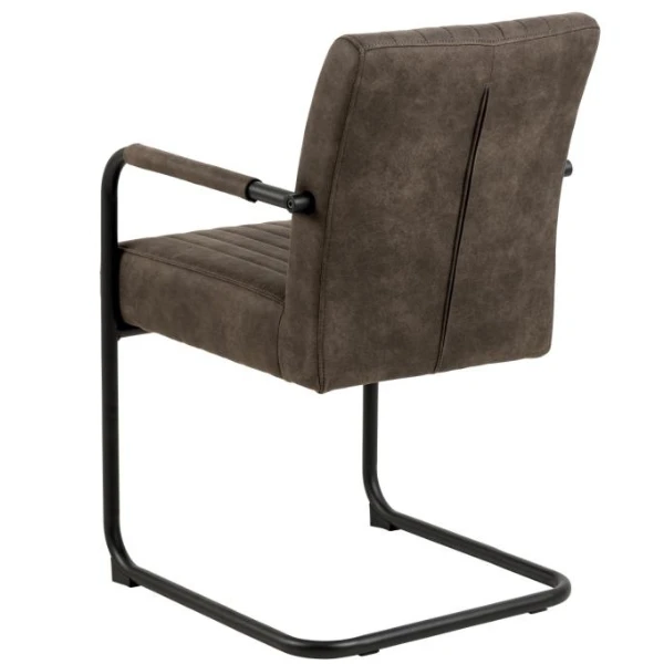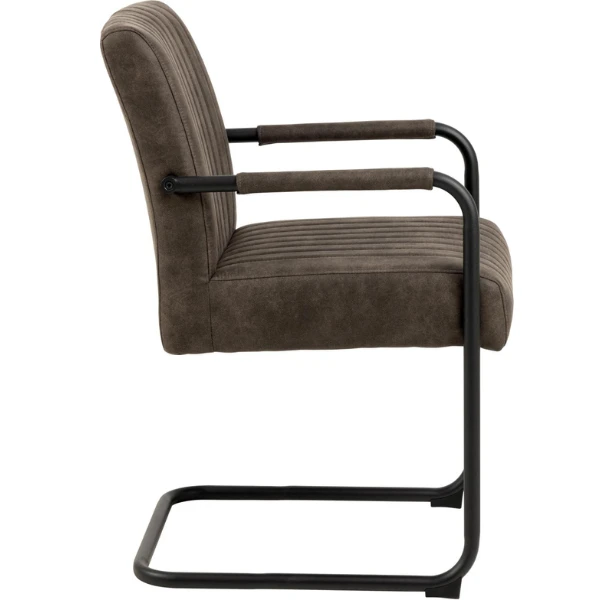 Stoel Adinda 50.5×64.5×84.5cm met zwarte stalen sledepoten en antracietkleurige bekleding.