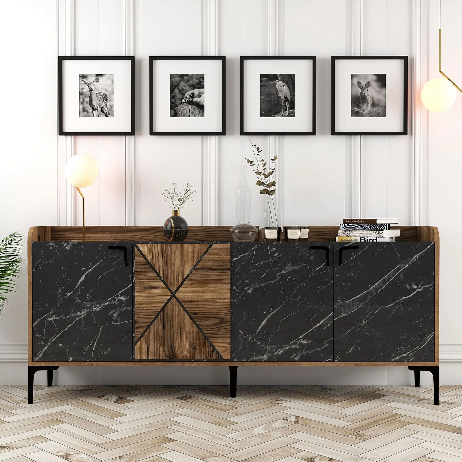 Woody Fashion Console: Stijlvol en duurzaam 100% melamine gecoat spaanplaat met metalen poten, handgreep en een strakke walnoot zwarte kleur.