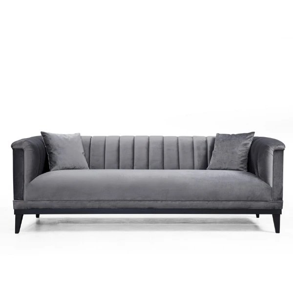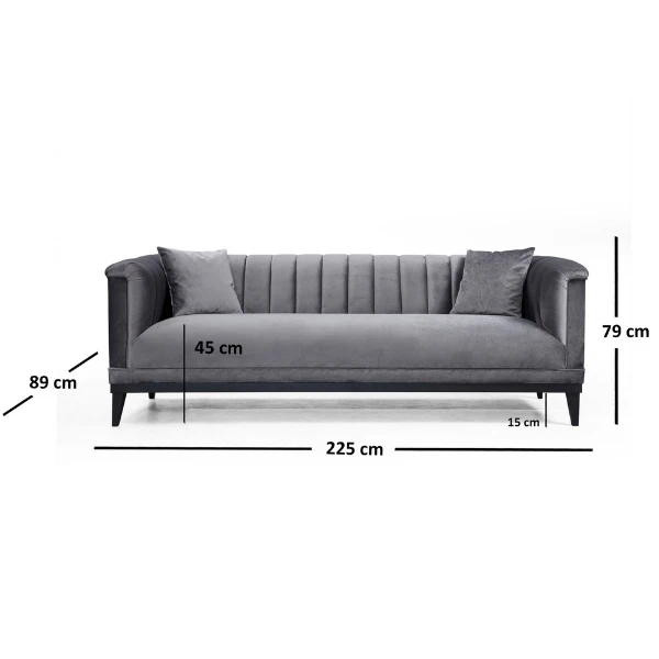 Maak kennis met de 3-zitsbank, een opmerkelijk meubelstuk dat voorbestemd is om de ster van je woonkamer te worden. Met zijn uitzonderlijke comfort en unieke ontwerp is deze bank de perfecte aanvulling om je ruimte op te frissen en je interieur op te waarderen. Een van de opvallende kenmerken van deze 3-zitsbank is het stevige frame, gemaakt van hoogwaardig beukenhout en spaanplaat. Dit zorgt voor duurzaamheid en een lange levensduur, zodat u met een gerust hart weet dat uw investering de tand des tijds zal doorstaan. Het gebruik van eersteklas materialen draagt ook bij aan de algehele stabiliteit en sterkte van de bank, waardoor hij bestand is tegen regelmatig gebruik en de eisen van het dagelijks leven.Gemaakt van 100% polyester stof, ziet deze bank er niet alleen prachtig uit, maar biedt ook praktische voordelen. De stof voelt niet alleen zacht aan, maar is ook gemakkelijk te onderhouden. Omdat de stof chemisch gereinigd kan worden, kunt u uw bank er gemakkelijk fris en schoon laten uitzien. Dit is vooral belangrijk als je huisdieren of kinderen hebt, want morsen en vlekken komen vaak voor. Met deze bank heb je het beste van twee werelden – een stijlvol meubelstuk dat ook gemakkelijk schoon te maken is.De afmetingen van deze 3-zitsbank zijn ontworpen om voldoende zitruimte te bieden zonder afbreuk te doen aan het comfort. Met een breedte van 225 cm, hoogte van 79 cm en diepte van 89 cm kunnen er gemakkelijk meerdere mensen op zitten, waardoor hij ideaal is voor familiebijeenkomsten of het ontvangen van gasten. Het schuim dat gebruikt is bij de constructie van de bank is van hoge kwaliteit, met een dichtheid van 28 DNS en een dikte van 16 cm. Dit zorgt voor optimaal comfort en ondersteuning, zodat je kunt ontspannen en tot rust kunt komen na een lange dag.Het unieke Sofabed-systeem met een draaibaar rugleuningmechanisme voegt veelzijdigheid toe aan deze bank. Met een eenvoudige aanpassing kun je de bank veranderen in een comfortabel bed voor overnachtende gasten. Deze functie maakt het een uitstekende keuze voor mensen met beperkte ruimte of voor iedereen die de functionaliteit van hun meubilair wil maximaliseren.Om een vleugje elegantie en gezelligheid toe te voegen, wordt deze 3-zitsbank geleverd inclusief twee kussens. Deze kussens zorgen niet alleen voor extra comfort, maar dragen ook bij aan de algehele esthetische aantrekkingskracht van de bank. Met hun afmetingen van 45 cm x 45 cm hebben ze de perfecte afmeting om de bank aan te vullen zonder het ontwerp te overheersen.Voor extra stabiliteit en stijl wordt deze bank ondersteund door zwarte