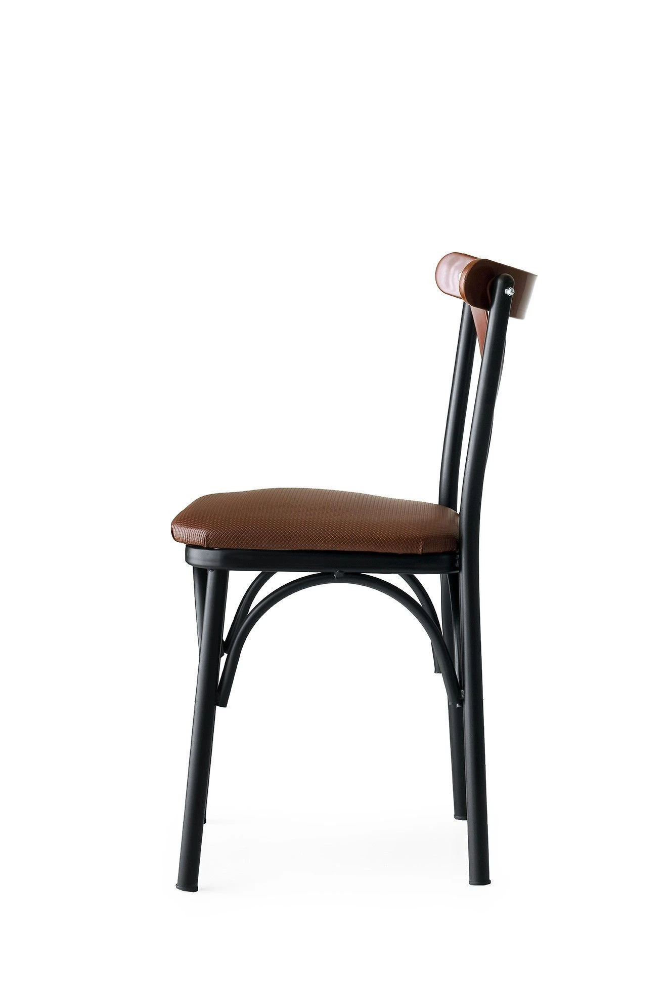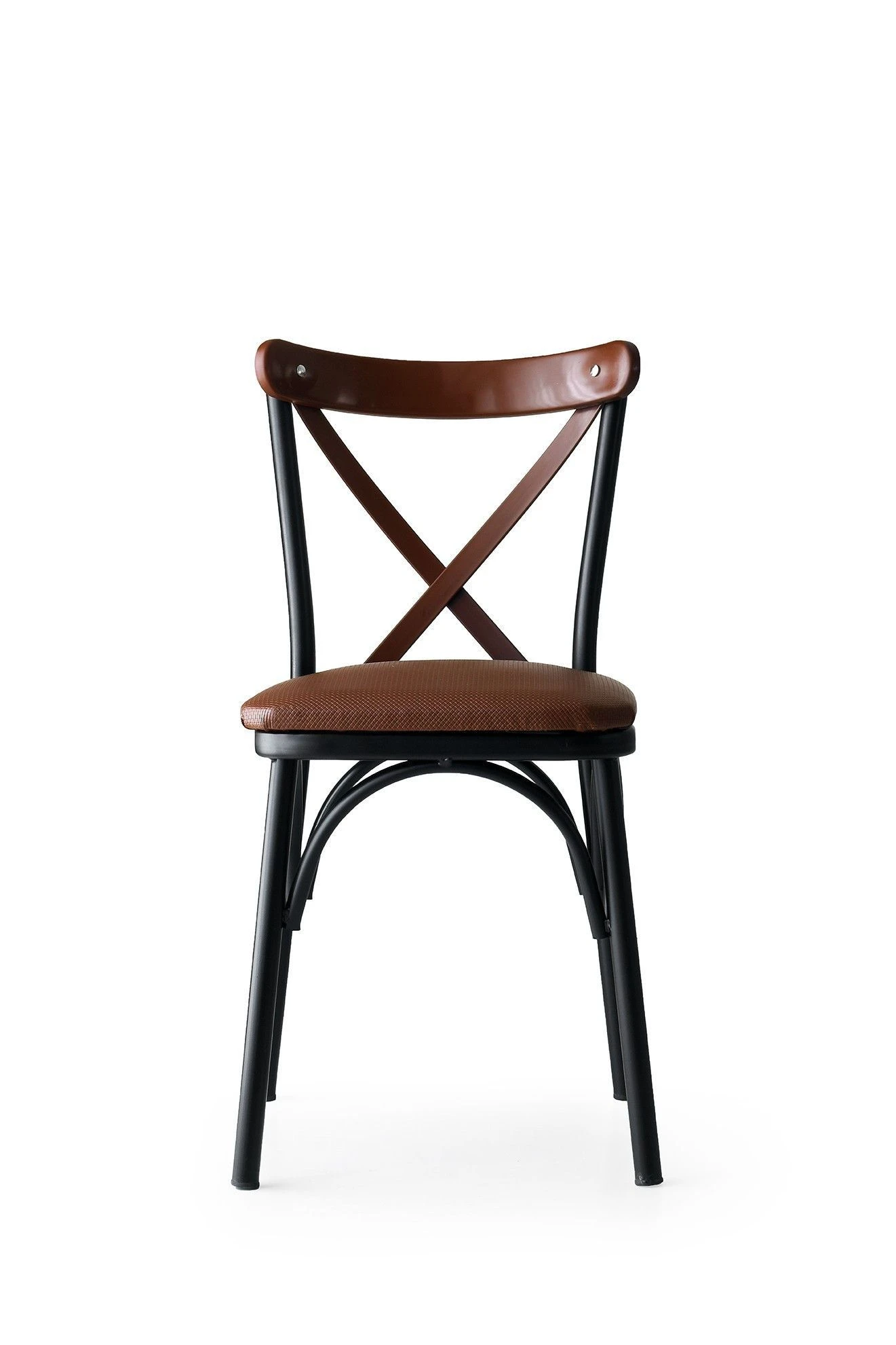 Stijlvolle en comfortabele stoelenset met modern design. Gemaakt met een 100% metalen frame, PU leren zitting en kunststof rugleuning. Bruine kleur. Maximaal gewicht van 200 kg
