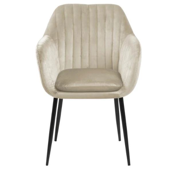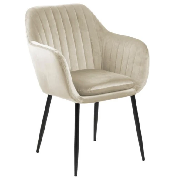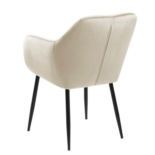 De armleuningen van de Hermeline eetkamerstoel bieden extra gemak, zodat je je armen comfortabel kunt laten rusten terwijl je eet of een gesprek voert. Het ergonomische ontwerp van de stoel zorgt ervoor dat je langere tijd kunt zitten zonder ongemak.