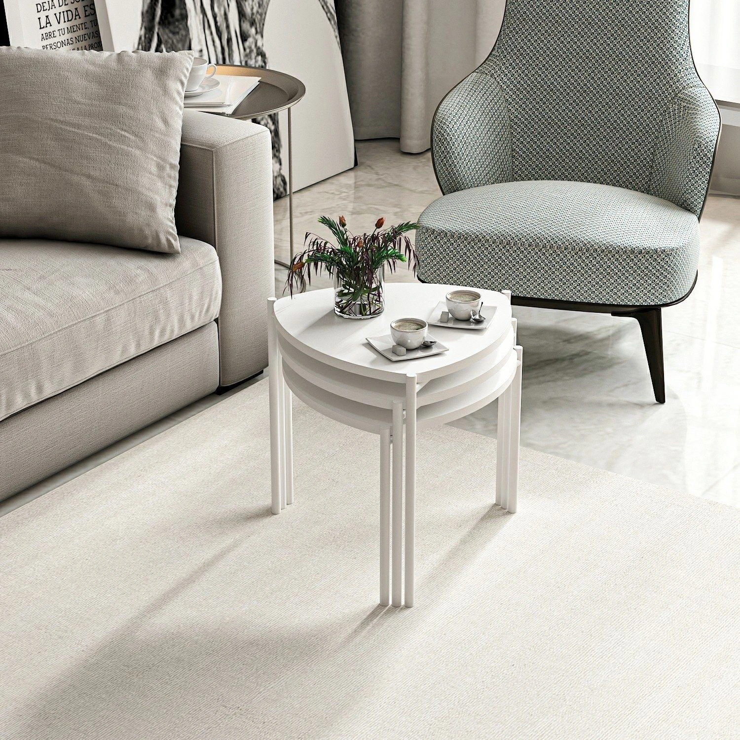 Deze nesttafels zijn niet alleen stijlvol, maar ook praktisch. Of je nu een extra oppervlak nodig hebt om je koffie of snacks op te zetten terwijl je gasten ontvangt, of een ruimte om je favoriete decorstukken uit te stallen, deze tafels voldoen aan al je behoeften. Door hun compacte formaat en stapelbare ontwerp zijn ze perfect voor kleine ruimtes, appartementen of studentenkamers.
