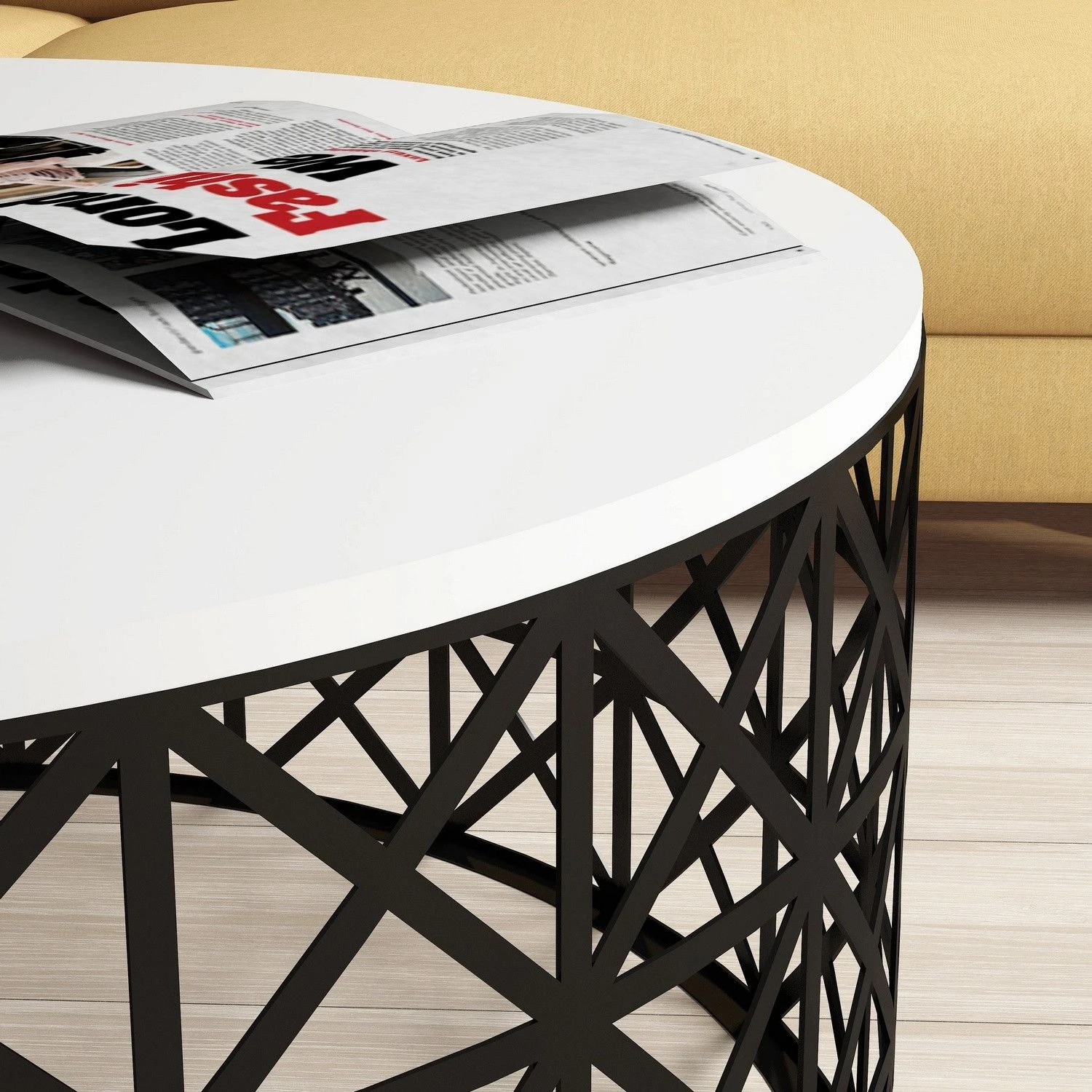Stijlvolle Woody Fashion Salontafel | Melamine Gecoat | 18mm Dik | Smeedijzeren Poten | Wit En Zwart