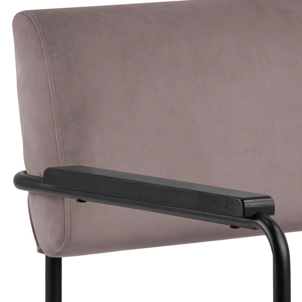 Stoel Cloe heeft door zijn zachte, oudroze stofbekleding en zijn armleuningen een hoog zitcomfort. Oudroze is in vergelijking met roze een stuk minder opvallend. In deze stoel wordt het oudroze bovendien met matzwart gecombineerd, waardoor de stoel ook geen overdreven vrouwelijke uitstraling heeft.