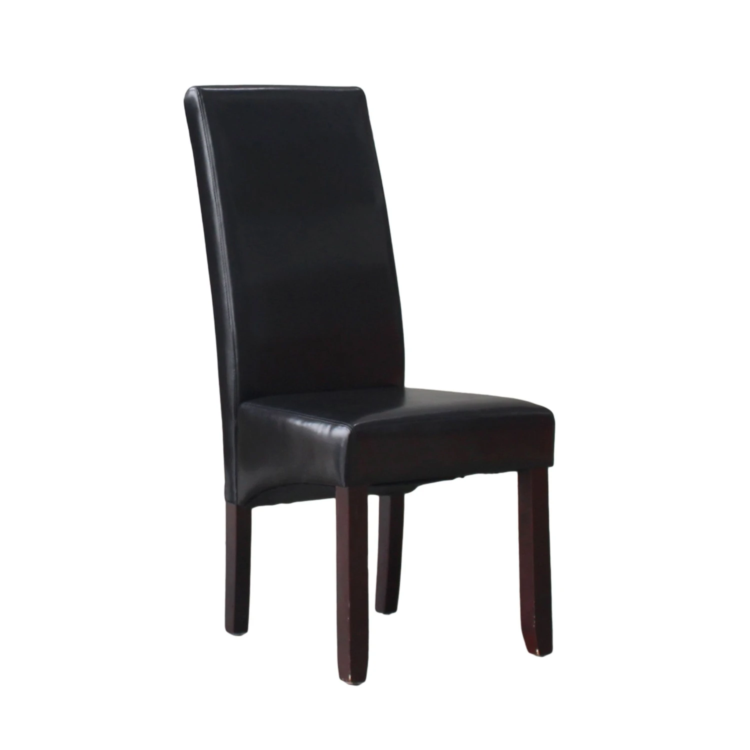 Zwarte stoel Sirine met kunstlederen bekleding en massief houten poten.