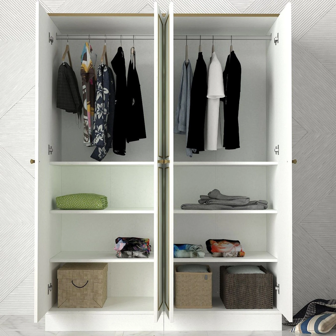 Met een totale afmeting van 140 cm in de breedte, 194 cm in de hoogte en 47 cm in de diepte biedt deze kledingkast voldoende opbergruimte voor al je kleding, accessoires en persoonlijke spullen. Het ruime interieur is ontworpen voor een breed scala aan items, waaronder lange kledingstukken, opgevouwen kleding, schoeisel en zelfs opbergdozen.