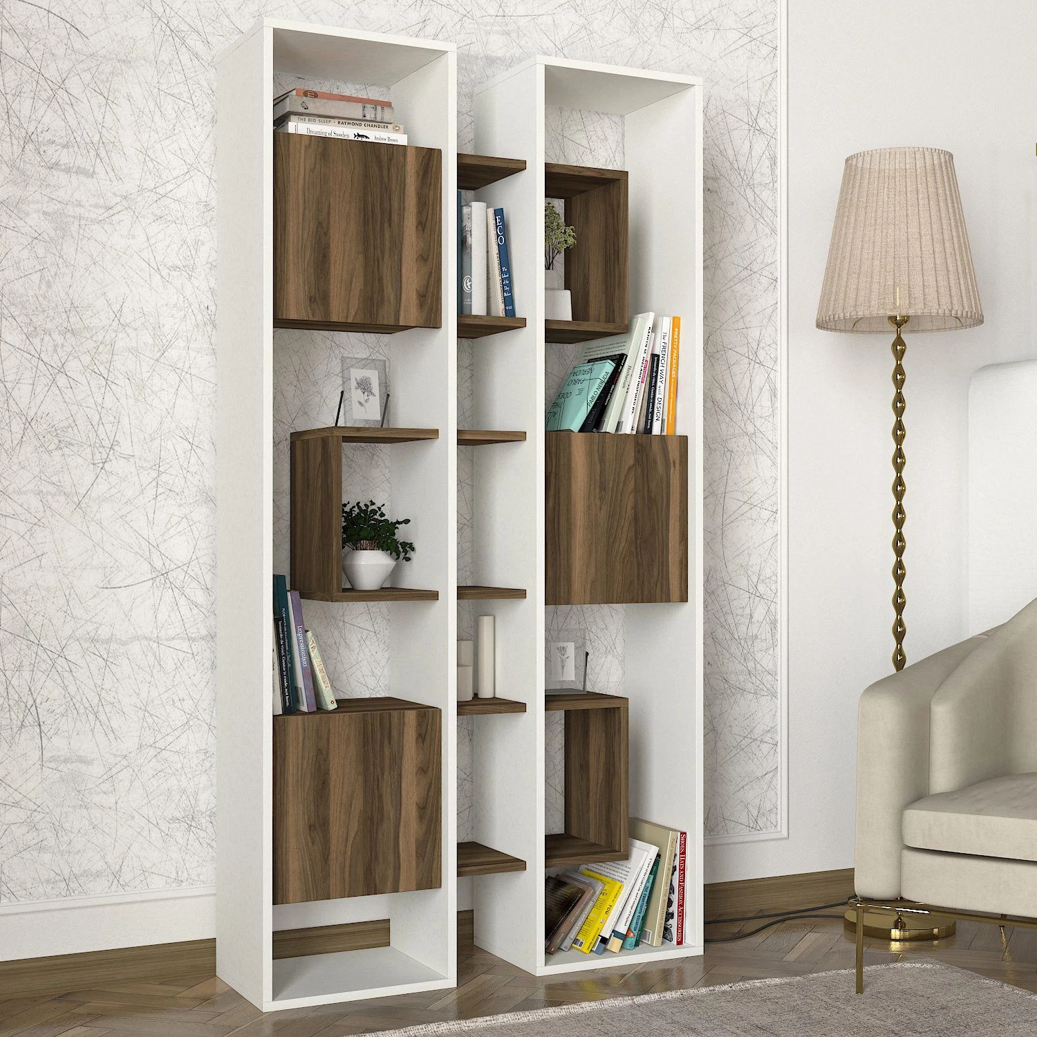 De Tera Home boekenplank is afgewerkt in een elegante witte walnootkleur en voegt een vleugje verfijning en moderniteit toe aan elk interieur. Het mooie contrast tussen de witte en walnoten tinten geeft de boekenplank een tijdloze uitstraling, waardoor het een veelzijdig stuk is dat een breed scala aan decoratieve stijlen en kleurenschema’s aanvult. Of je huis nu een minimalistische, eigentijdse of traditionele inrichting heeft, de Tera Home boekenplank zal de visuele esthetiek moeiteloos verbeteren.