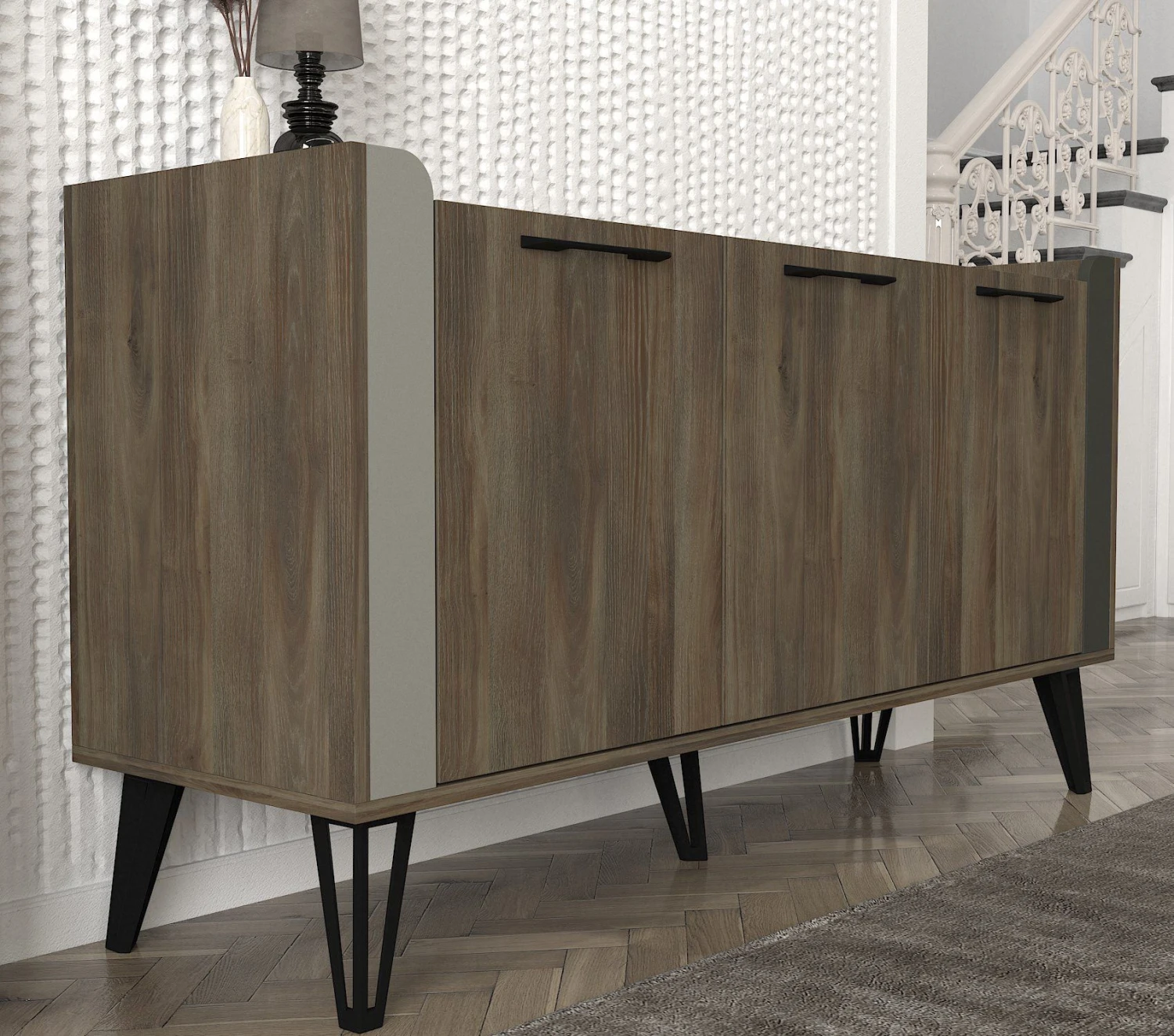 De Tera Home console is verkrijgbaar in een prachtige grijs antraciet walnoot kleur. Deze neutrale tint past naadloos bij elk bestaand interieur of kleurenschema. Of je stijl nu minimalistisch of eigentijds is, deze console zal je ruimte moeiteloos aanvullen.