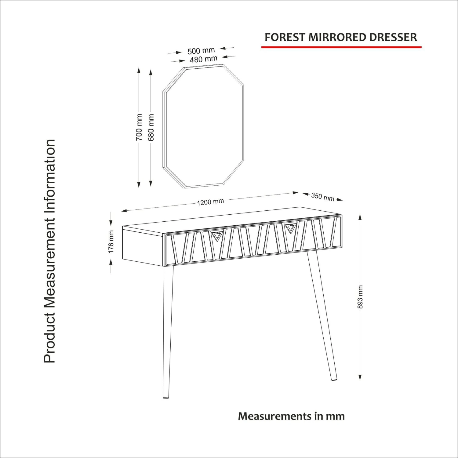 Met royale afmetingen van 120 cm in de breedte, 89 cm in de hoogte en 35 cm in de diepte biedt dit dressoir voldoende opbergruimte voor al je benodigdheden. Of je nu een plek nodig hebt om je servies, boeken of andere huishoudelijke spullen op te bergen, met dit dressoir zit je goed. Het is ook voorzien van een spiegel met afmetingen van 50 cm in de breedte, 70 cm in de hoogte en 2 cm in de diepte, die een vleugje verfijning toevoegt aan je ruimte.