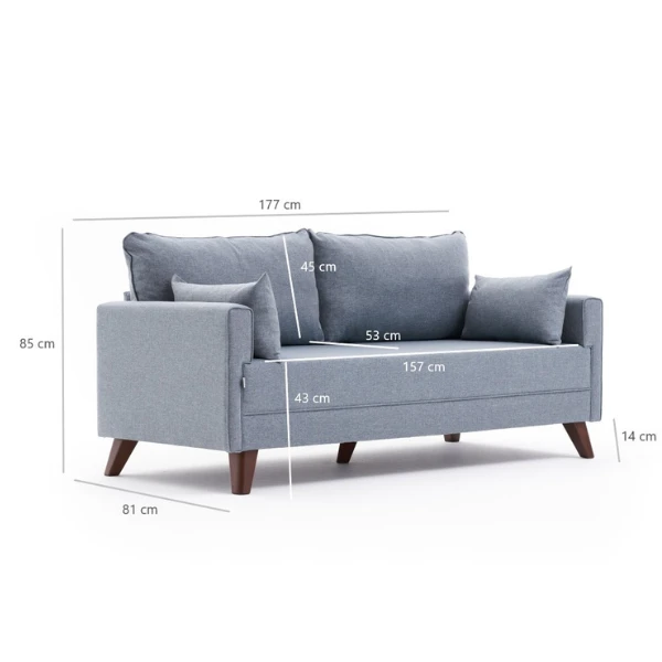 Maak kennis met onze 2-zitsbank, de ster van je woonkamer! Met zijn comfortabele en unieke ontwerp verfrist hij je ruimte. Voorzien van een frame van sparrenhout, 100% polyester stof, gemakkelijk schoon te maken optie en elegante blauwe kleur