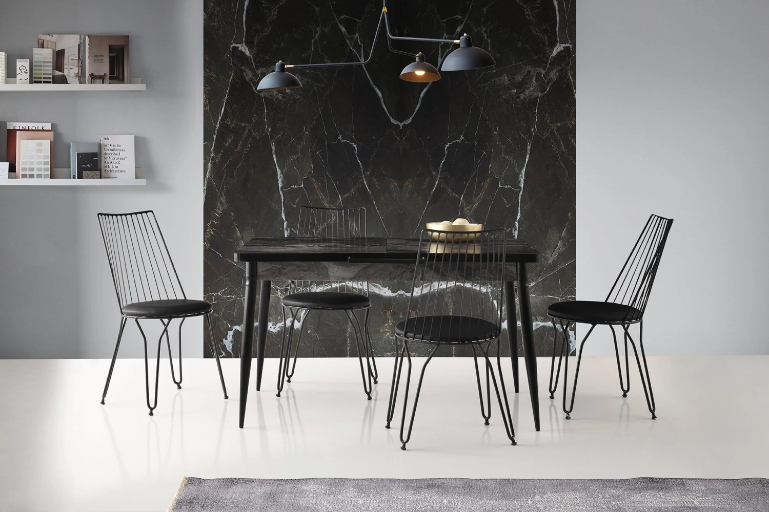 Vella eettafel heeft 100% gemelamineerde spaanplaat, kunststof poten en een strakke zwarte kleur. Met een breedte van 130 30 cm en een hoogte van 79 cm heeft hij een draagvermogen van 50 kg.