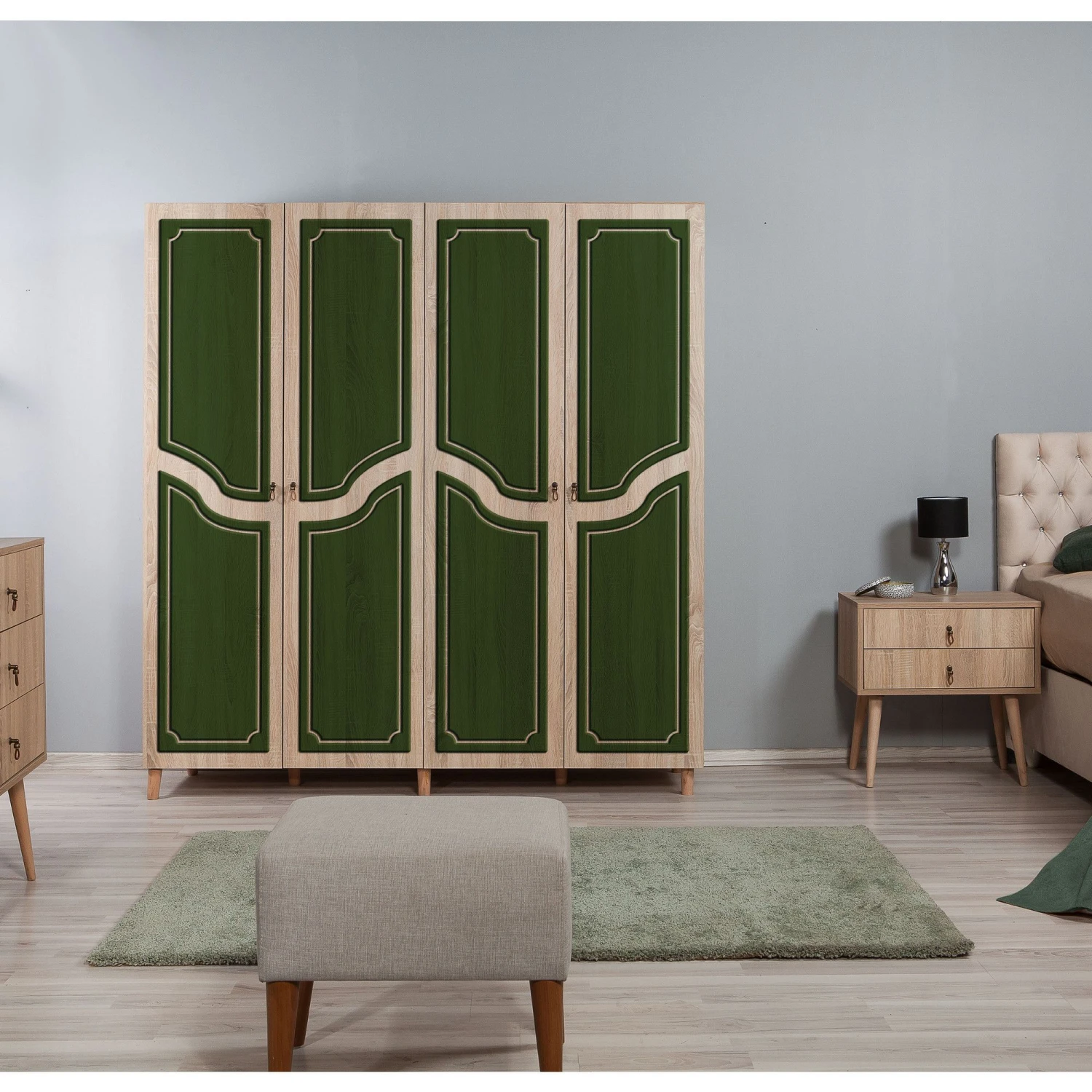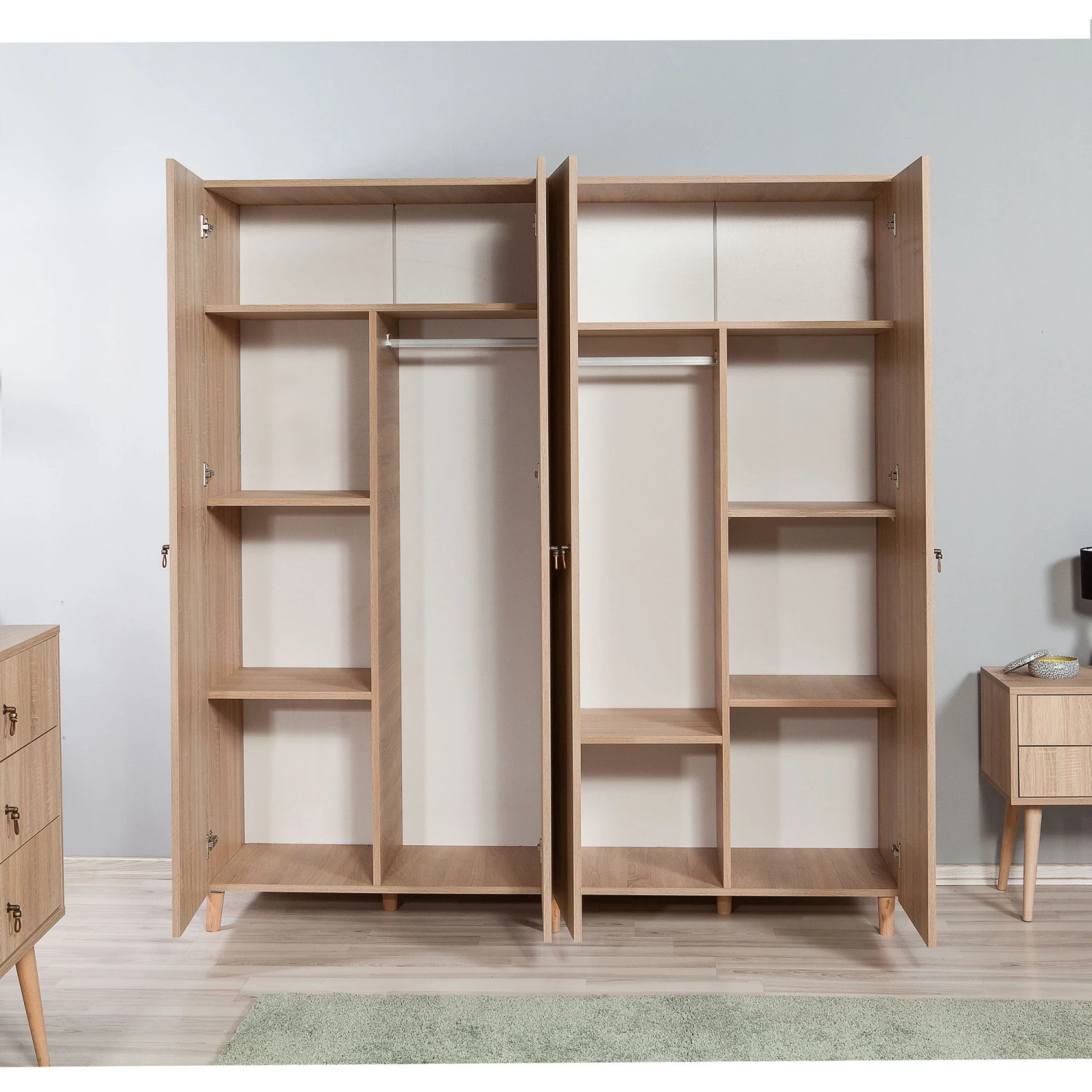 Vella kledingkast: 100% gemelamineerde spaanplaat met haagbeukenpoten, handgrepen van metaal en touw, UV-coating. Breedte: 180 cm, Hoogte: 192 cm, Diepte: 52 cm. Sonoma Eik kleur