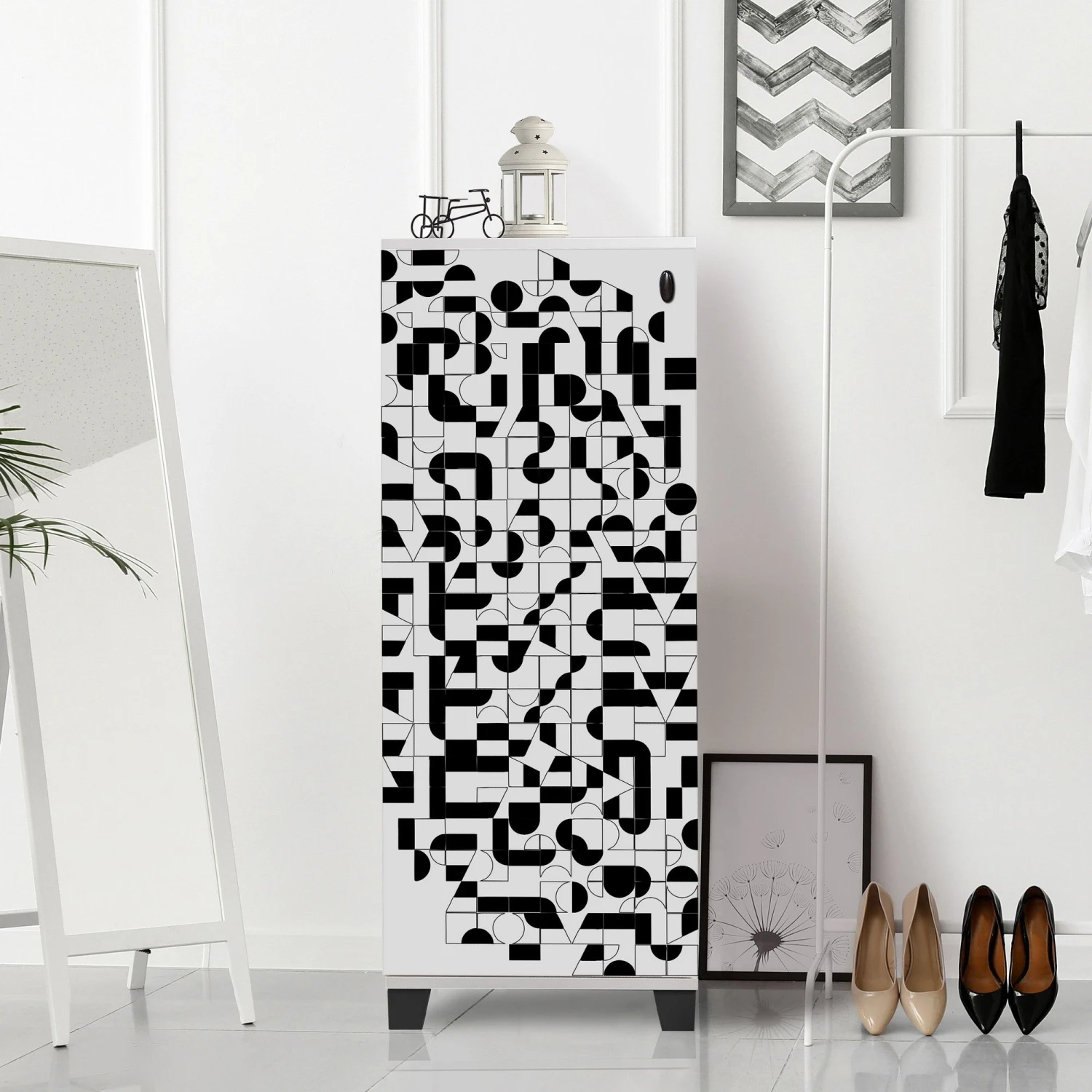 Ben je het zat om voortdurend te struikelen over schoenen die verspreid in je gang of woonkamer staan? Wil je een handige en stijlvolle oplossing om je schoeisel georganiseerd en gemakkelijk toegankelijk te houden? Zoek dan niet verder! Maak kennis met het gloednieuwe Vella Schoenenkastje, de perfecte opbergoplossing voor je schoenen. Het Vella Schoenenkastje is zorgvuldig ontworpen om te voldoen aan al je behoeften op het gebied van schoenen opbergen. Deze kast is gemaakt van 100% gemelamineerd spaanplaat en staat garant voor duurzaamheid en een lange levensduur. Het is gemaakt met een dikte van 18 mm, wat stevigheid en weerstand tegen slijtage garandeert.Een van de belangrijkste kenmerken van de Vella Schoenenkast zijn de kunststof poten, die stabiliteit bieden en schade aan je vloer voorkomen. Geen zorgen meer over krassen of vlekken op je ongerepte houten of betegelde vloeren! Met een breedte van 50 cm, een hoogte van 127 cm en een diepte van 38 cm is de Vella schoenenkast ontworpen om naadloos in je woonruimte te passen zonder al te veel ruimte in beslag te nemen. De Vella Schoenenkast heeft verstelbare planken met een hoogte van 13 cm, zodat je de opslagruimte kunt aanpassen aan verschillende schoenmaten en stijlen. Of je nu hoge hakken, sneakers, laarzen of sandalen hebt, in deze kast passen ze allemaal. Zeg vaarwel tegen schoenendozen en verwelkom een georganiseerde en toegankelijke schoenencollectie.Qua esthetiek wordt de Vella Schoenenkast geleverd in een elegante witte en zwarte kleurencombinatie. Dit strakke en moderne ontwerp voegt een vleugje verfijning toe aan elke kamer. Of je het nu in je hal, entree, slaapkamer of kast plaatst, deze schoenenkast past naadloos bij je bestaande inrichting en verbetert de algehele uitstraling van je ruimte.Door te investeren in de Vella schoenenkast krijg je niet alleen een rommelvrije en georganiseerde leefruimte, maar bespaar je ook kostbare tijd. Je hoeft niet meer te zoeken naar passende schoenen of tijd te verspillen aan het zoeken naar zoekgeraakte schoenen. Met alles netjes gerangschikt en goed zichtbaar, kun je moeiteloos je favoriete paar schoenen kiezen en aantrekken in een handomdraai.Bovendien helpt de Vella Schoenenkast de levensduur van je schoenen te verlengen. Door ze op te bergen in een speciale ruimte, voorkom je schade door erop te trappen, ze te pletten of ze bloot te stellen aan stof en vuil. Dit betekent dat je geliefde schoenen in ongerepte staat blijven, klaar voor gebruik.