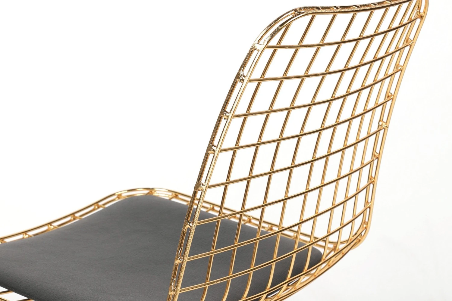 Vella Stoel Set: 2 elegante stoelen met een stevig 100% metalen frame, luxe leren zitting en een stijlvolle gouden kleurstelling. Breedte: 46cm, Hoogte: 81cm, Diepte: 42cm