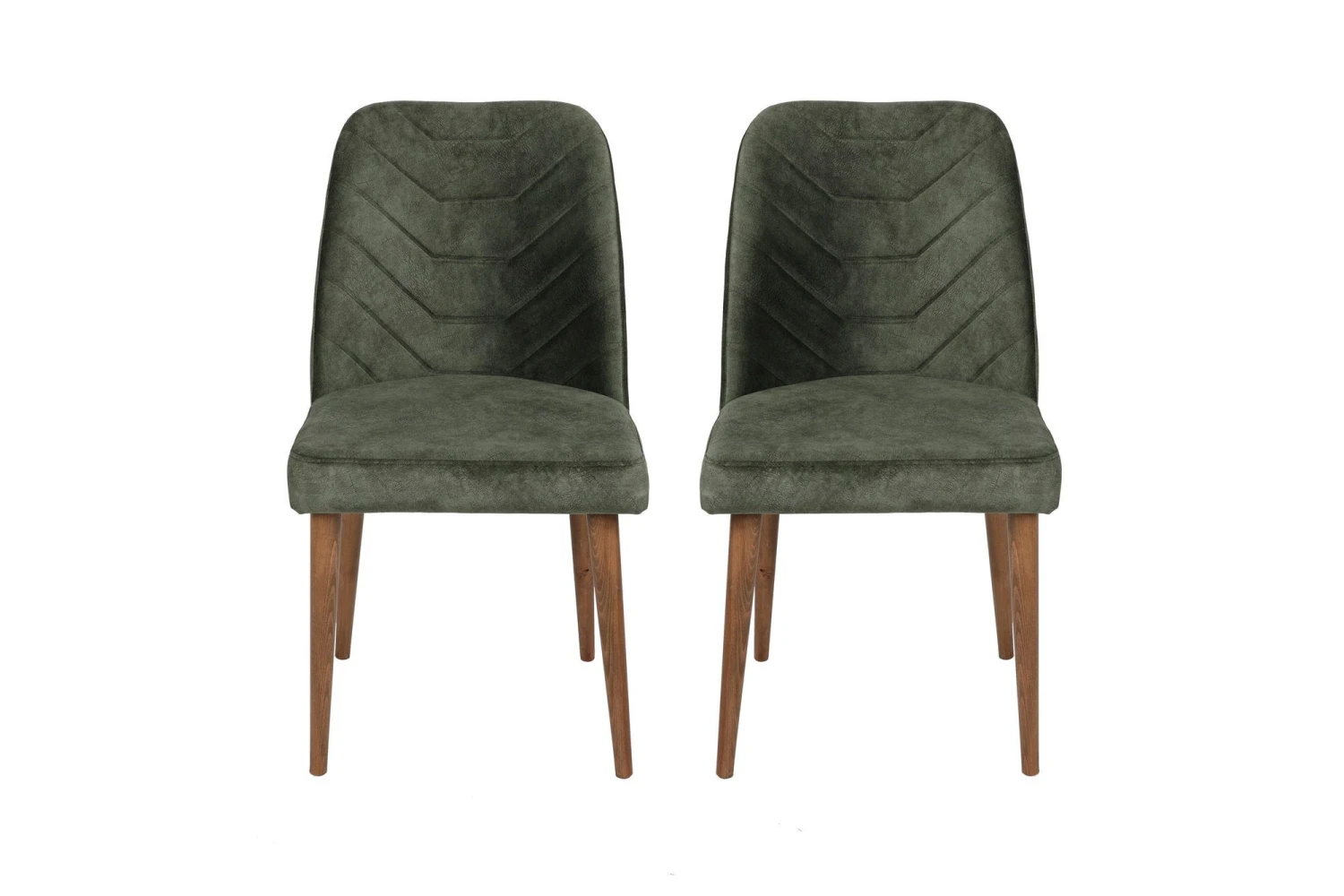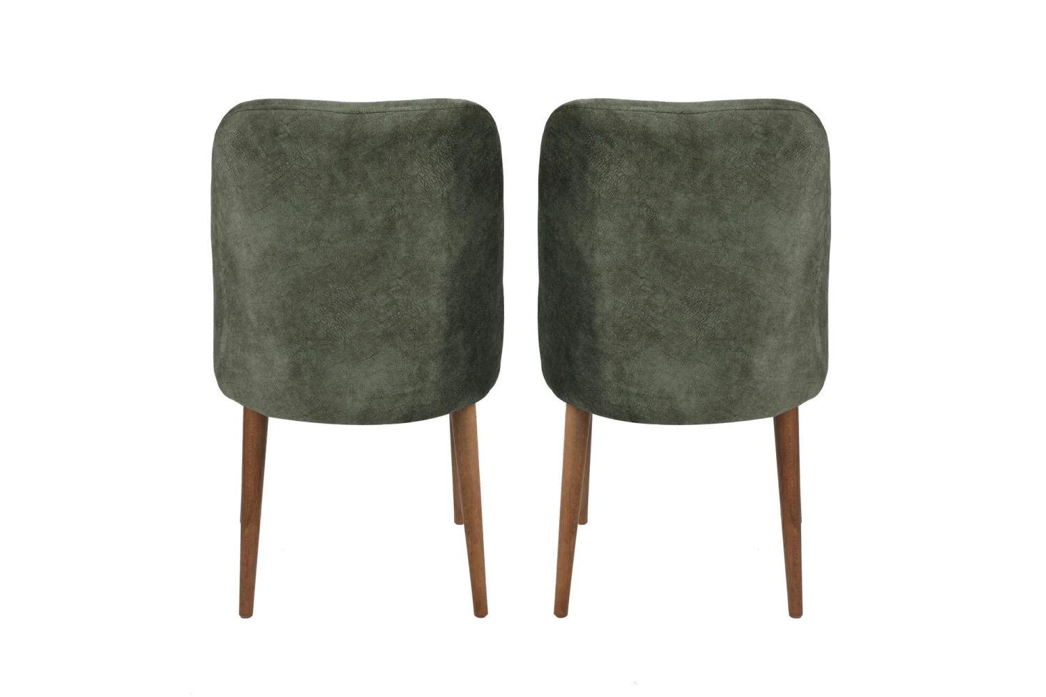 Vella Stoelset (2 Stuks) heeft een duurzaam 100% metalen frame, comfortabele fluwelen stoffen zittingen, stevige haagbeukenhouten poten en een stijlvolle walnoot donkergroene kleur. Met een breedte van 50 cm, hoogte van 90 cm en diepte van 49 cm heeft het een maximaal draagvermogen van 160 kg.