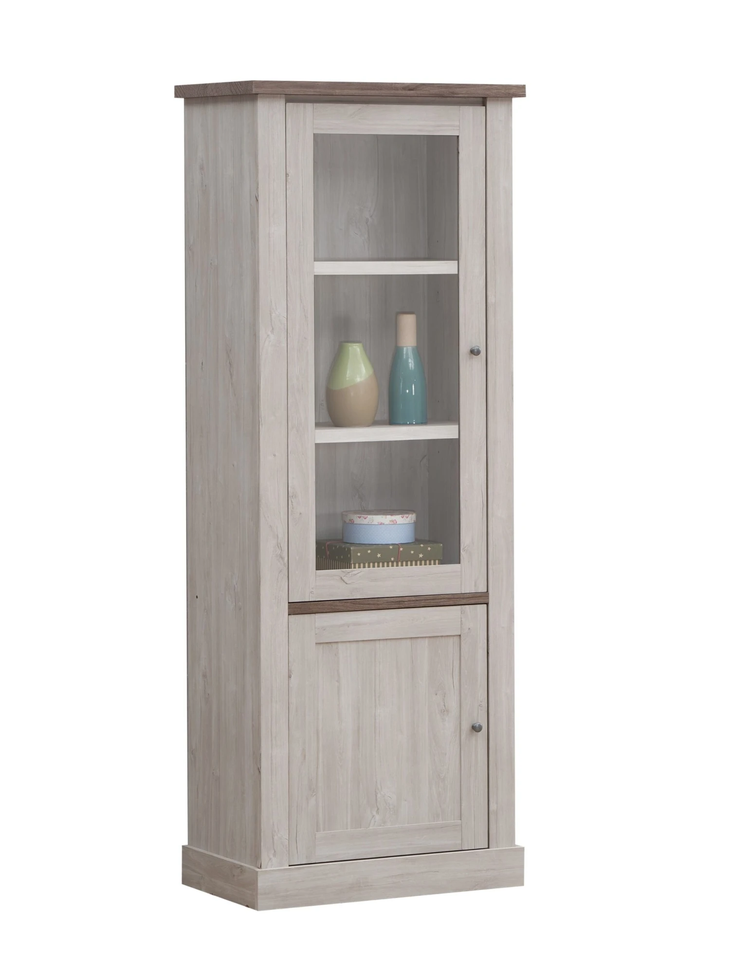 De Elayza vitrinekast is uitgerust met twee deuren. Achter de glazen deuren zitten twee legplanken. Dankzij de glazen deuren kan je de mooiste stukken van jouw servies tentoon stellen. Combineer deze vitrinekast met de andere meubelen van de Elayza-collectie.