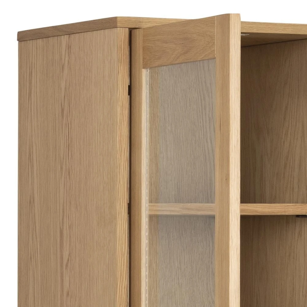 De Nalini vitrinekast is uitgerust met twee deuren, waarachter 8 legplanken zijn. Aan de onderkant van de vitrinekast zijn er nog twee kleinere deurtjes, die elk een opbergvak verschuilen. Met deze vitrinekast beschik je over genoeg opbergruimte in je woonkamer.