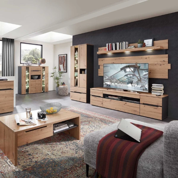 Wandpaneel Medina Met Verlichting – Eik/antraciet