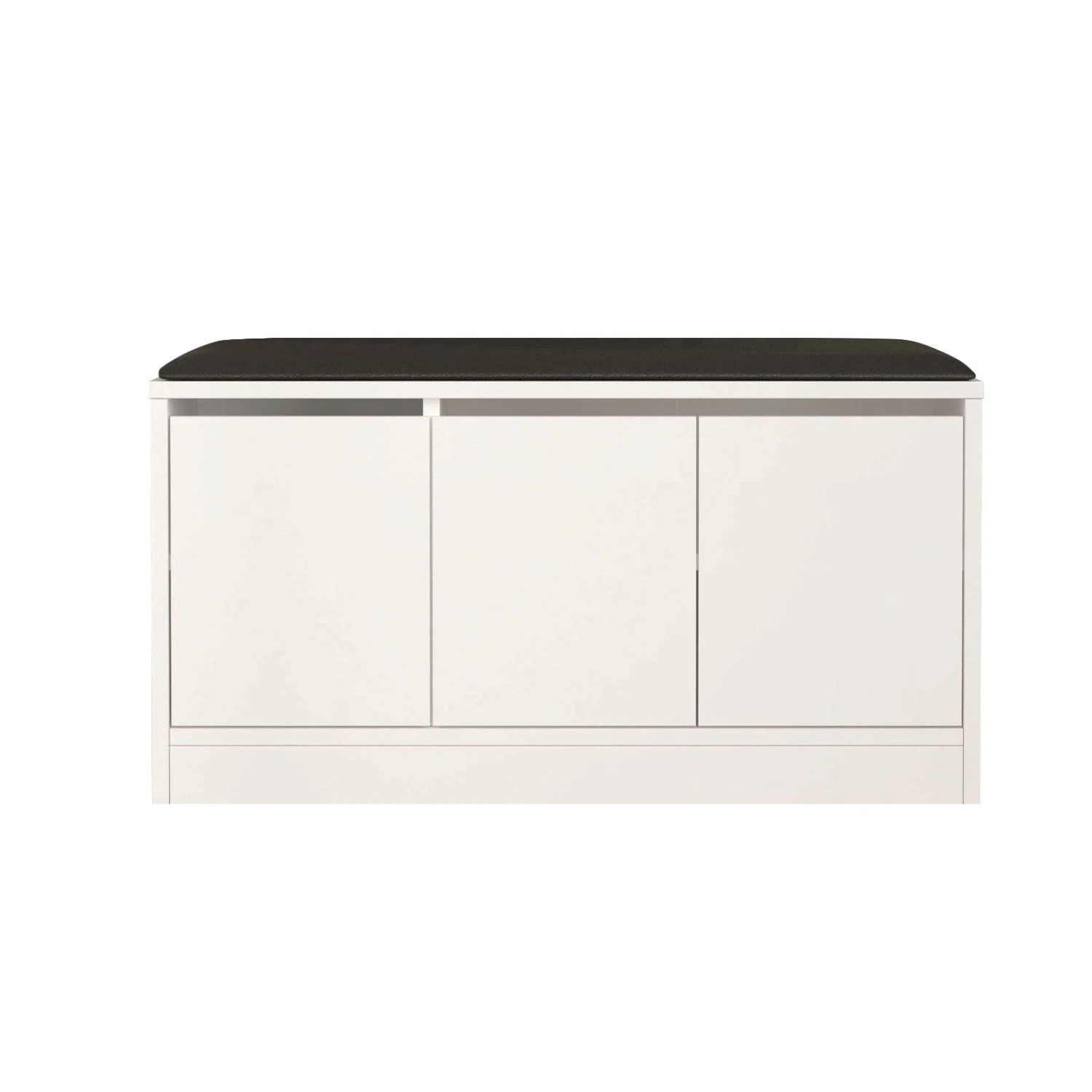 Onze schoenenkast is een stijlvolle en functionele manier om je entree te organiseren. Het is gemaakt van 100% gemelamineerd spaanplaat met een dikte van 18 mm en heeft een bovenkant van 100% PU leer. Met afmetingen van 89,6 cm breed, 45,8 cm hoog en 35,5 cm diep, in een tijdloze witte kleur.