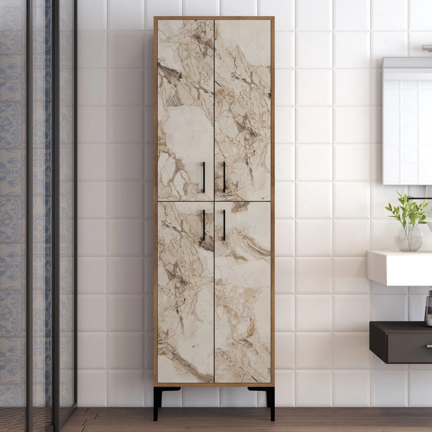 De metalen poten in het ontwerp versterken niet alleen de visuele aantrekkingskracht van de kast, maar bieden ook uitstekende stabiliteit en ondersteuning. Deze metalen poten zorgen voor een stevige basis, zodat je je spullen zonder zorgen kunt plaatsen en organiseren. Wees gerust, je kast zal stevig staan en het gewicht van je spullen moeiteloos dragen.