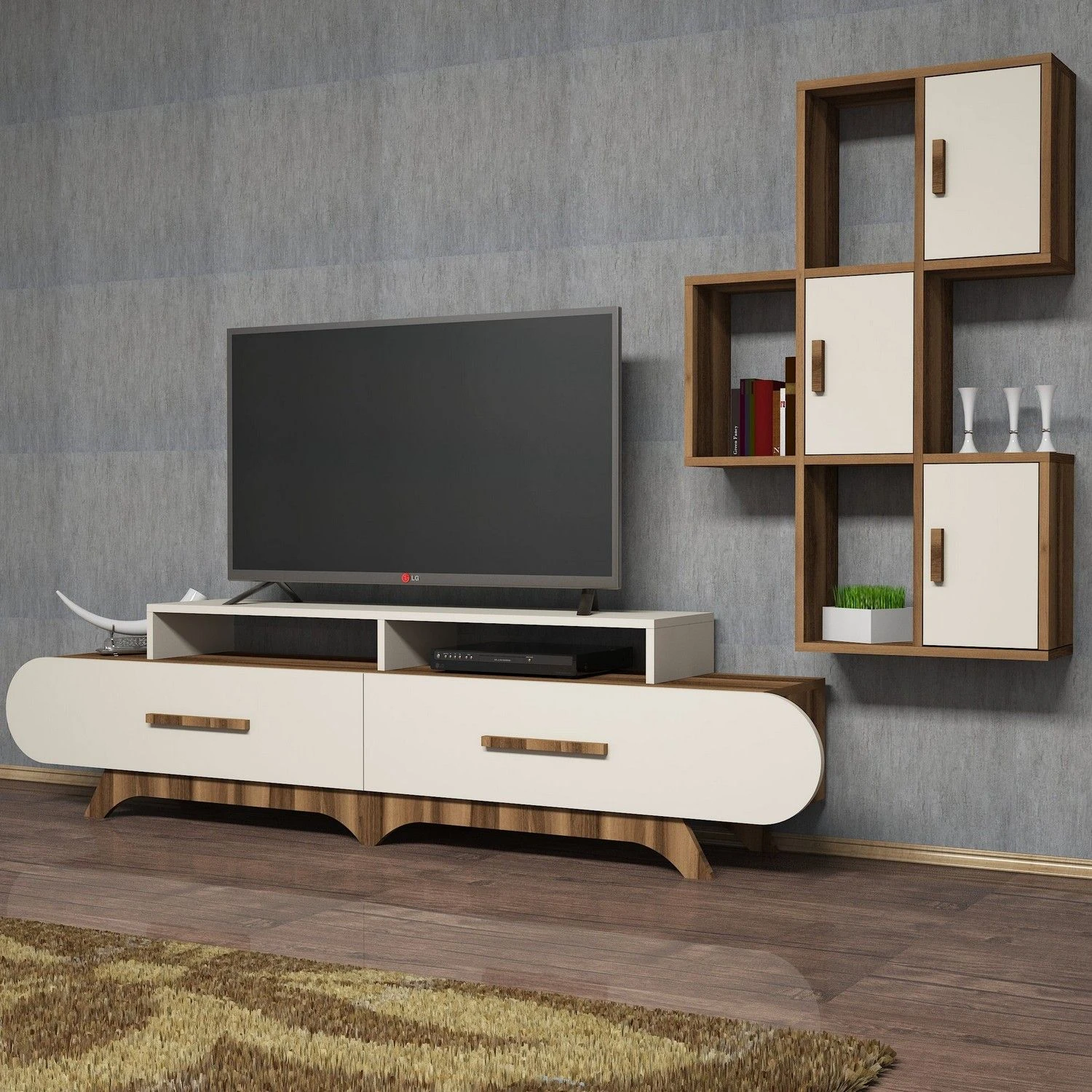 Woody Fashion TV-meubel – 100% gemelamineerd spaanplaat, 18 mm dik. Afmetingen: 205cm (B) x 50cm (H) x 36cm (D). Kleur: Walnoot-crème