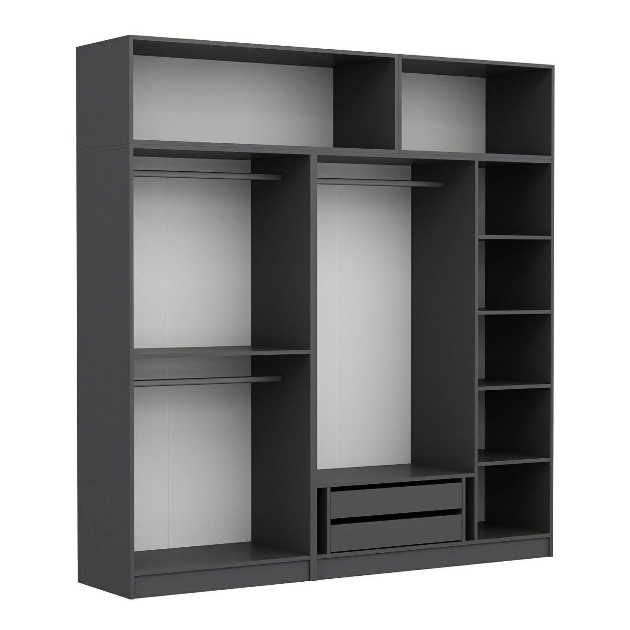 Met een breedte van 225 cm, een hoogte van 235 cm en een diepte van 52 cm biedt deze ruime kast voldoende opbergruimte voor al je spullen. Zeg maar dag tegen rommel en hallo tegen een georganiseerd leven! Hij is voorzien van talloze legplanken zodat je je kleding, accessoires en andere benodigdheden netjes kunt ordenen.