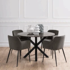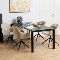 Eetkamerstoel Denise : Beige Basel Stof Zwart Stalen Onderstel