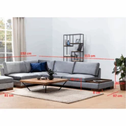 Comfortabele En Stijlvolle Hoekbank | Donkergrijs, Beukenhouten Frame | Inclusief Poef En Kussens