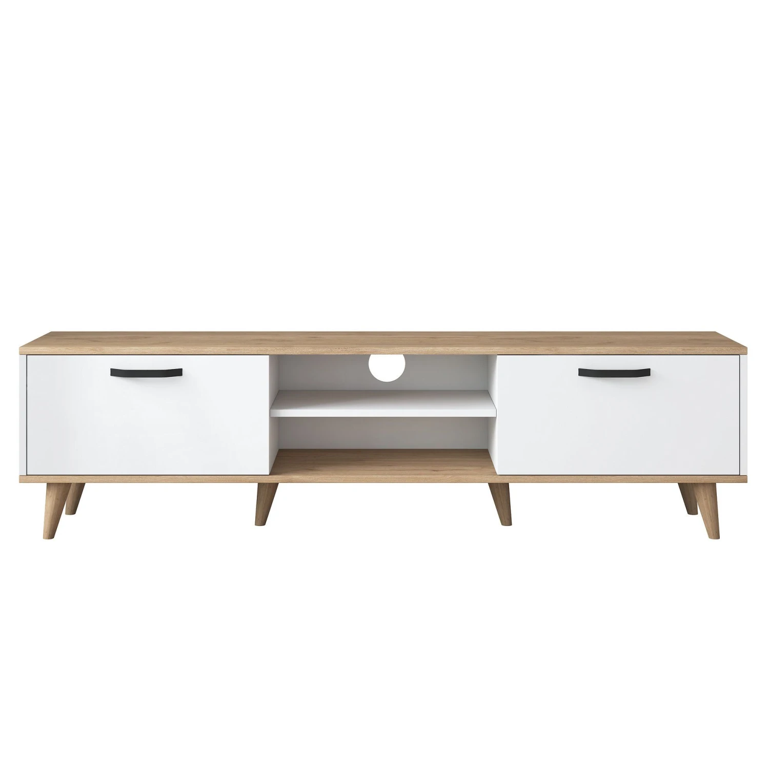 Bovendien is het Wren TV-meubel ontworpen met het oog op functionaliteit. Het heeft ruime open planken en compartimenten, zodat u uw dvd-speler, kabelkastje, spelconsoles en andere media-apparaten handig kunt opbergen en weergeven. Het open ontwerp bevordert een efficiënte ventilatie, waardoor overmatige warmteontwikkeling wordt voorkomen en de levensduur van je elektronica wordt verlengd.