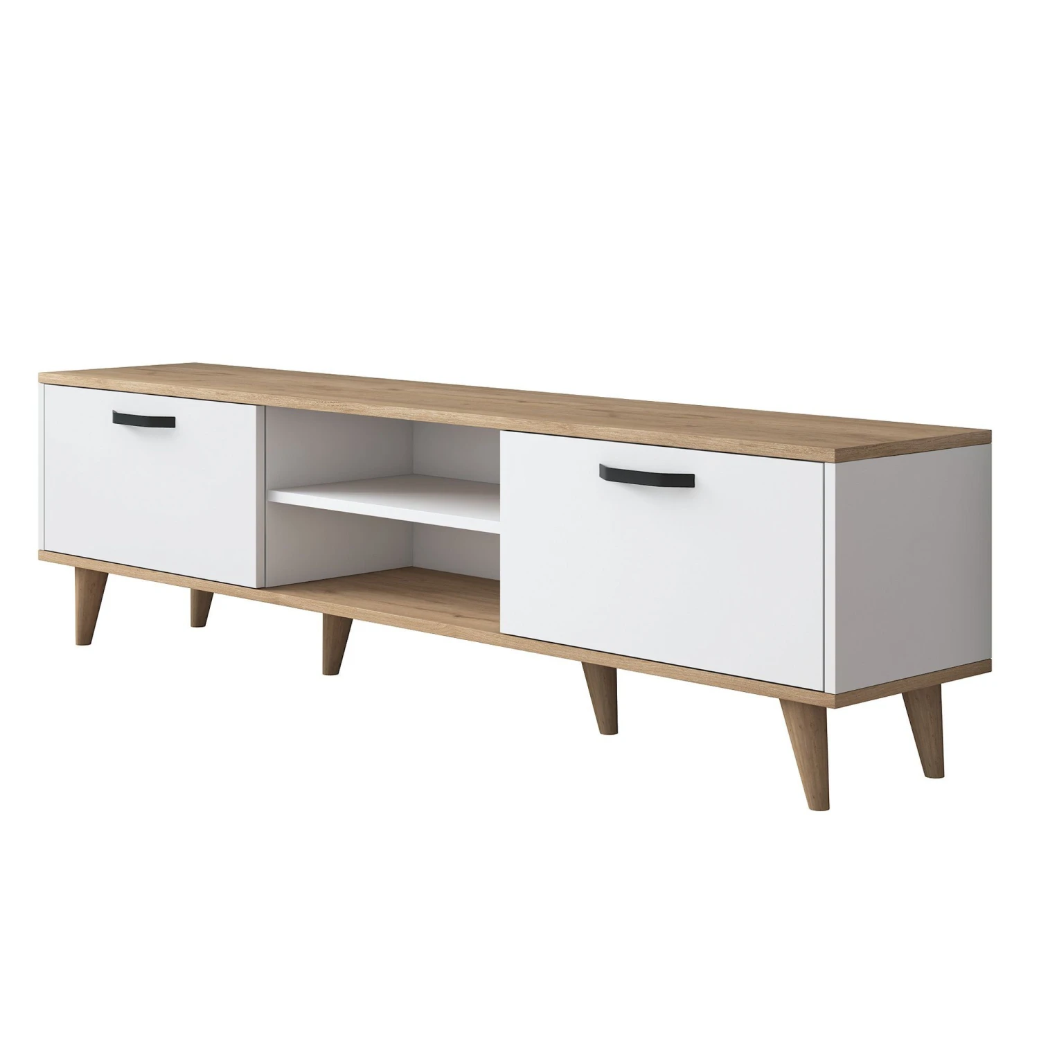 Esthetisch gezien is het Wren TV-meubel ontworpen in een verfrissende en tijdloze kleur wit walnoot. De fusie van witte en walnoten accenten creëert een modern en elegant statement dat moeiteloos bij elk interieur past. De strakke lijnen en het minimalistische ontwerp zorgen ervoor dat dit TV-meubel de visuele aantrekkingskracht van je woonkamer verbetert zonder de aandacht af te leiden van je televisie.
